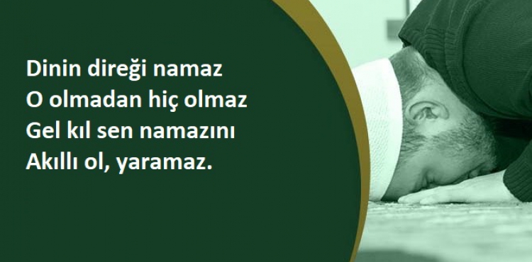 “Beş vakit namaz, birinizin evin önünden akan, suyu bol bir nehir gibidir, her gün beş kere bu nehre girip yıkanırsa üzerinde kir namına bir şey kalabilir mi?”(Buhârî, Mevâkît 6; Müslim, Mesâcid 283. Ayrıca bk. Tirmizî, Emsâl 5; Nesâî, Salât 7; İbni Mâce, İkâmet 193)